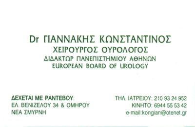 Διδάκτωρ Πανεπιστημίου Αθηνών F.E.B.U., χείρουργος ουρολόγος, παιδοουρολόγος.Δέχεται καθημερινά 18:00 - 20:00 με ραντεβού.