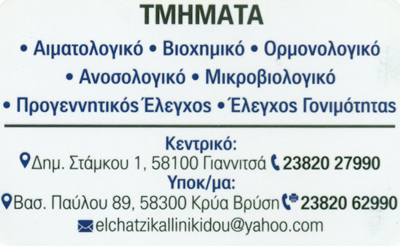 2o εργαστήριο: Βασ. Παύλου 89, Κρύα Βρύση Γιαννιτσώντηλ.: 2382062990