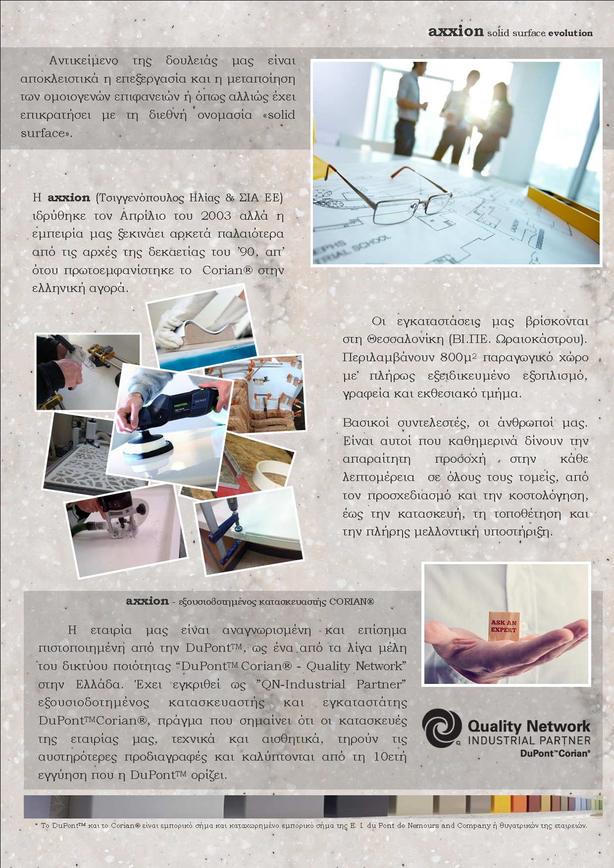 Μεταποίηση και επεξεργασία ομοιογενών επιφανειών (Solid Surfaces), ειδικές κατασκευές πάγκοι κουζίνας - μπάνιου