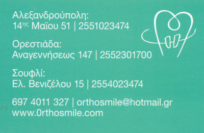 2ο Ιατρείο: Ελευθέριου Βενιζέλου 12, Σουφλί / Τηλ.: 25540234743ο Ιατρείο: Αναγεννήσεως 147, Ορεστιάδα / Τηλ.: 2552301700
